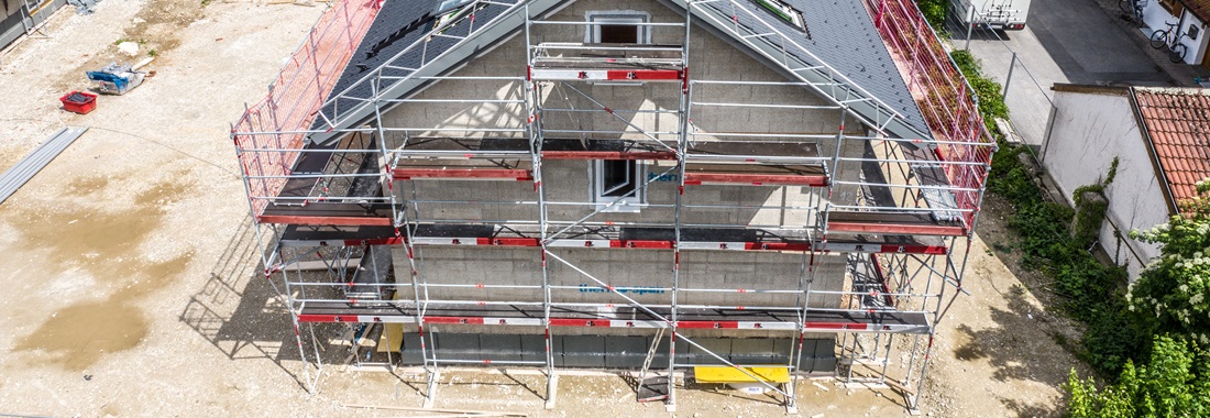 Gerüst für den Neubau eines Vierspänners / Block aus vier Reihenhäusern in Freilassing (2020)